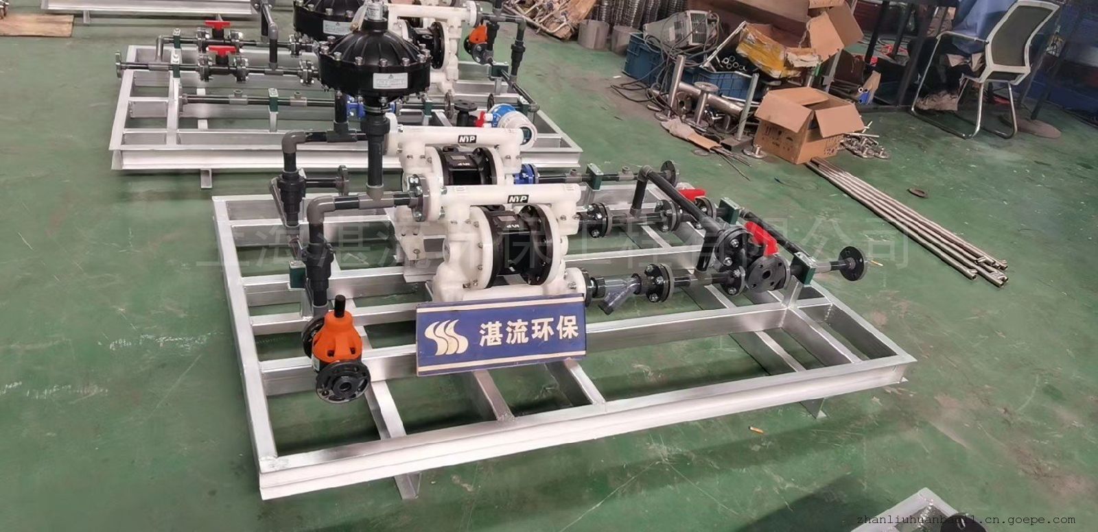 每条焚烧线都设有立的渗滤液喷射装置。每条线的渗滤液喷射装置由两台变频控制的喷射泵及多只喷射枪组成。喷射泵经开关阀将渗滤液抽出,加压后经脉冲阻尼器和背压阀稳压后,进入反应塔(或急冷塔)的喷射装置。泵的出口设有压力安全阀保护泵的出口管路,避免超压损坏管路及管件。 -